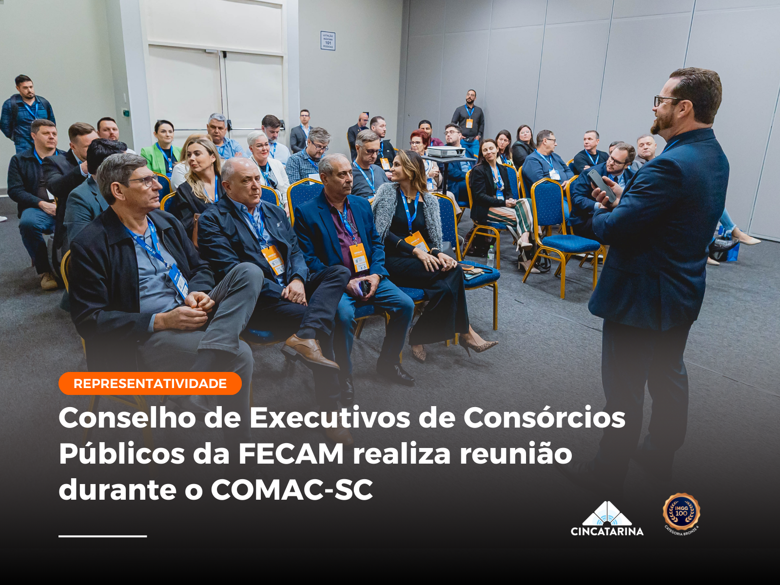 Na última quarta-feira (3), durante o Congresso de Municípios, Associações e Consórcios de Santa Catarina – COMAC-SC, em Balneário Camboriú, foi realizada a reunião do Conselho de Executivos de Consórcios Públicos da FECAM, que contou com a participação de dirigentes de consórcios públicos de diferentes regiões do estado.